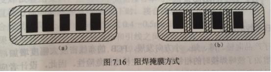 1、在兩焊盤之間無導(dǎo)線通過時,可采用阻焊掩膜窗孔形式,當(dāng)兩焊盤間有導(dǎo)線通過時,則采用圖b形式,以防止橋連。