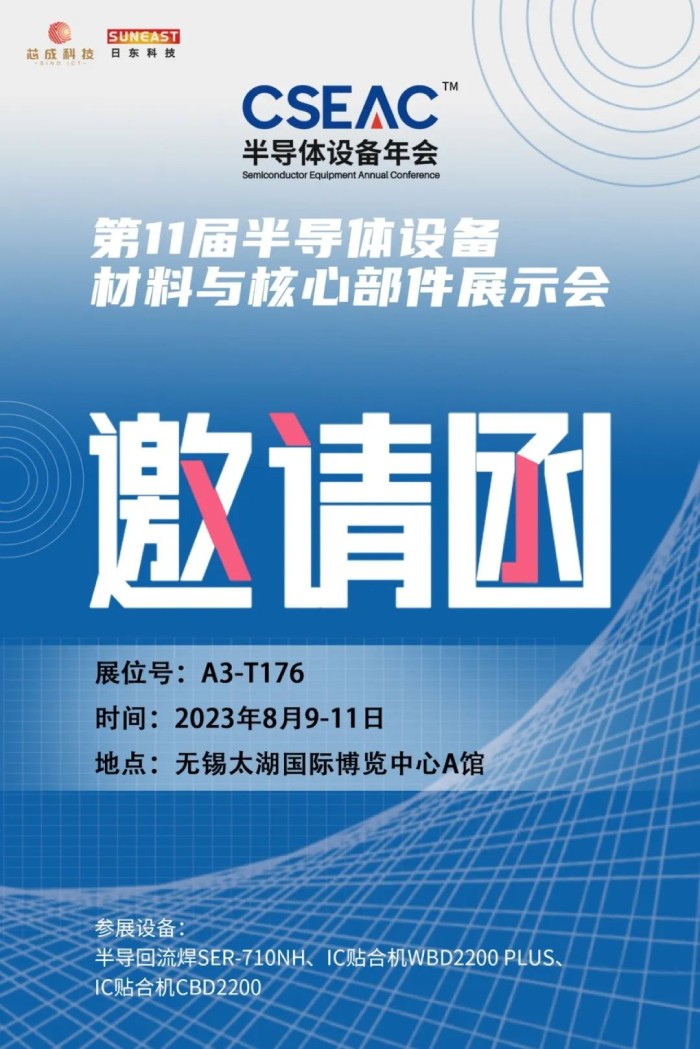 日東科技受邀參加本屆展會,將展出半導(dǎo)體專用回流焊、半導(dǎo)體封裝設(shè)備“IC貼合機(jī)”,并在8月10日上午的專題活動(dòng):新品發(fā)布專場,進(jìn)行IC貼合機(jī)的新產(chǎn)品發(fā)布,歡迎您蒞臨日東展臺和新品發(fā)布會場,與我們面對面溝通交流!