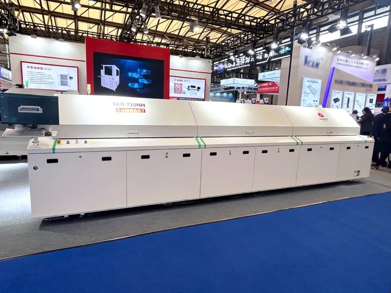 日東科技本次參展的精密焊接設(shè)備“全程充氮回流焊”和“選擇焊波峰焊”,分別在SMT和DIP精密焊接中憑借實(shí)力出圈,展現(xiàn)了出色的性能。