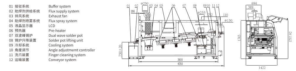 ●錫爐采用外熱式加熱,錫爐內(nèi)膽采用鑄鐵制作,內(nèi)表面防腐蝕處理,兩個低流速噴口、低氧化量設(shè)計;